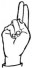 На ћирилици написано КОСТАДИН ВУКОЈЕВИЋ састоји се из 17 слова [?]. Исписано ћириличном једноручном азбуком за глувонеме: